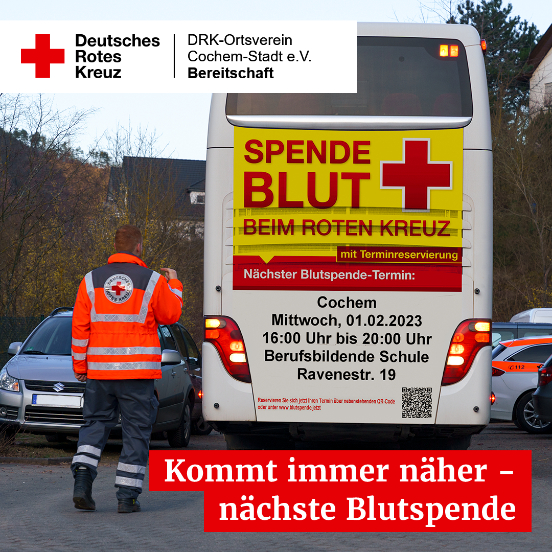 wir dürfen euch zur ersten Blutspende in Cochem im Jahr 2023 begrüßen.